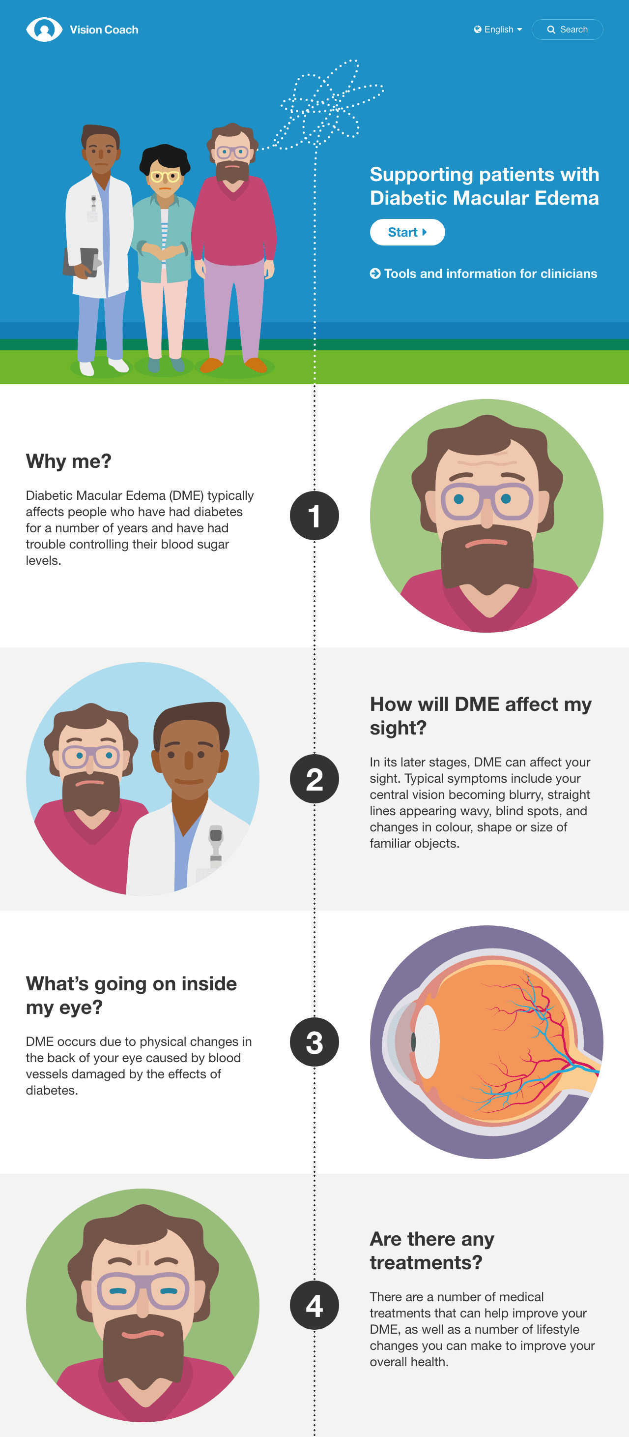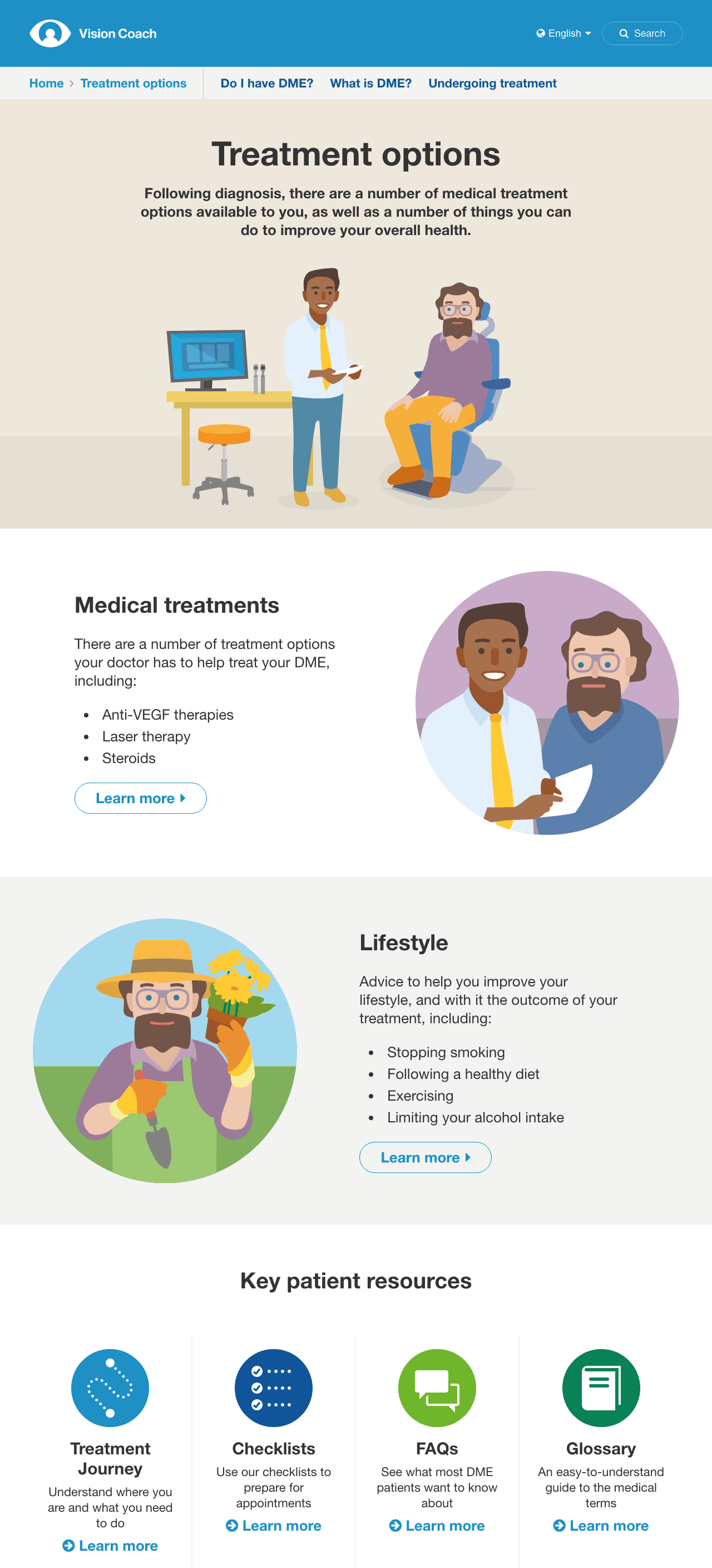 An educational website provides bite-sized easy to read material, structured around common patient questions to help them explore and understand their condition and available treatments.